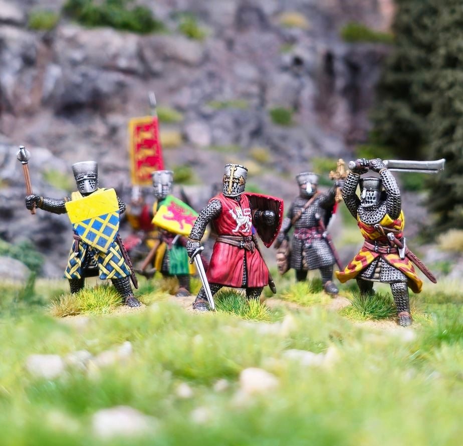 This set has 32 Foot Knights representing knights of the Late 12th to 13th Centuries. They can be used in the Crusades, The First and Second Barons War, The Spanish Reconquista and as Germans, French, Poles, Italians who were all waging war on each other throughout this turbulent time in history.