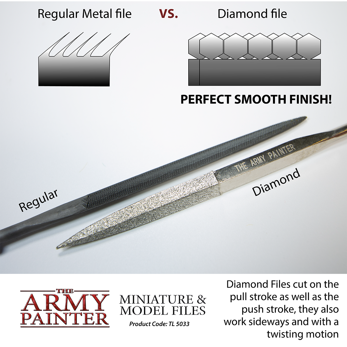 These 3x diamond files are extremely versatile tools for the wargamer & hobbyist. A must-have for custom conversions and cleaning mold lines, as well as preparing pieces for gluing. Works on plastic, resin and metal surfaces.